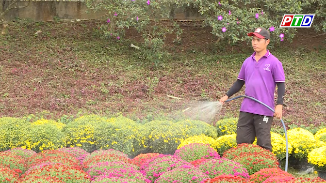 Khu Du lịch Tà Đùng cũng đã bài trí hơn 500 chậu cúc mâm xôi, cúc Hàn Quốc và hoa cát tường trong khuôn viên khu du lịch. Tất cả cúc đều được mua trực tiếp từ làng hoa Sa Đéc, tỉnh Đồng Tháp, bung nở đúng dịp Tết Nguyên đán.